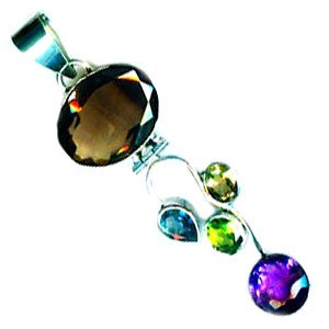 92.5 Sterling Silver Certified Handmade Best Quality Cut Smoky, Amethyst, Peridot, Blue Topaz Pendant