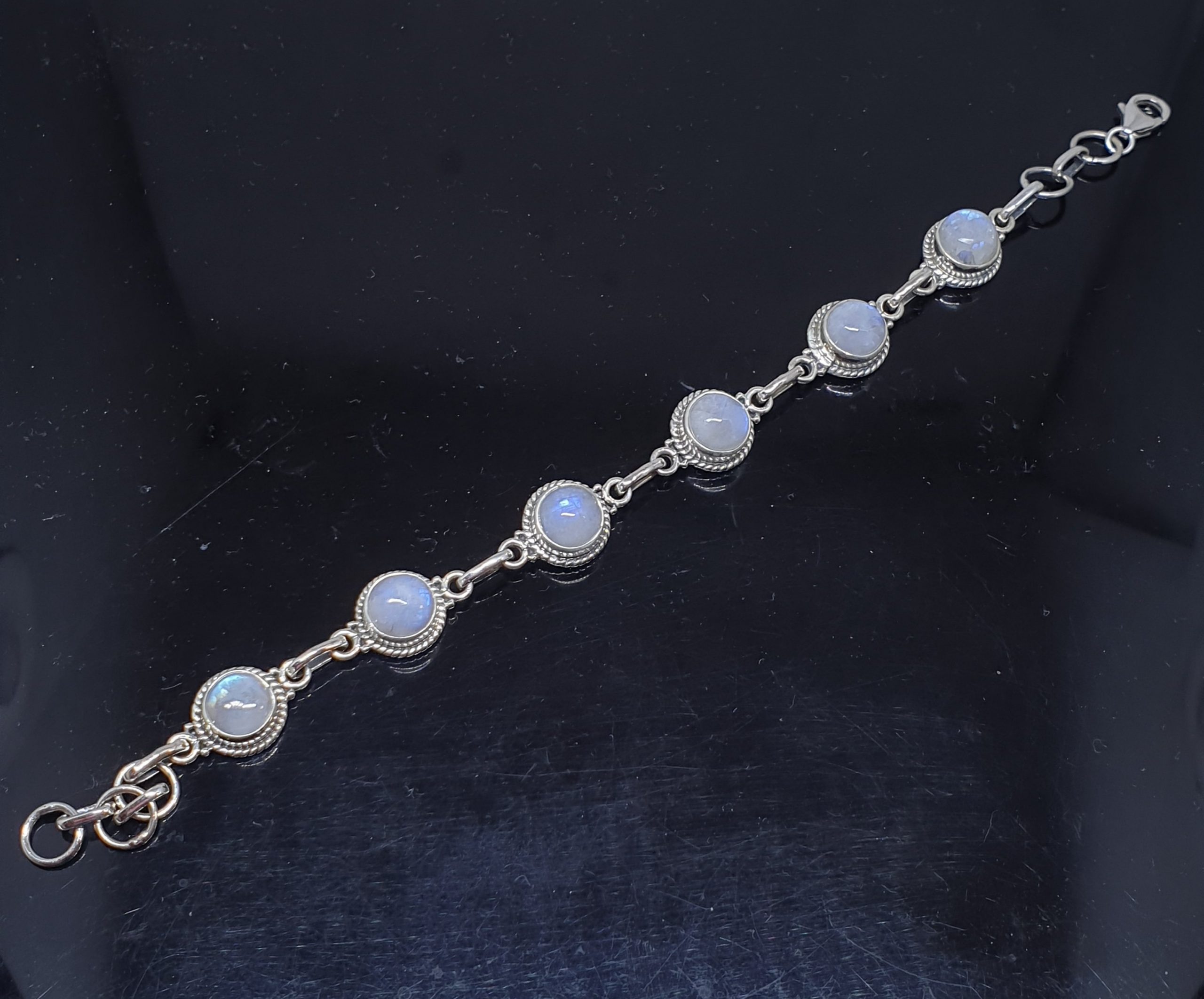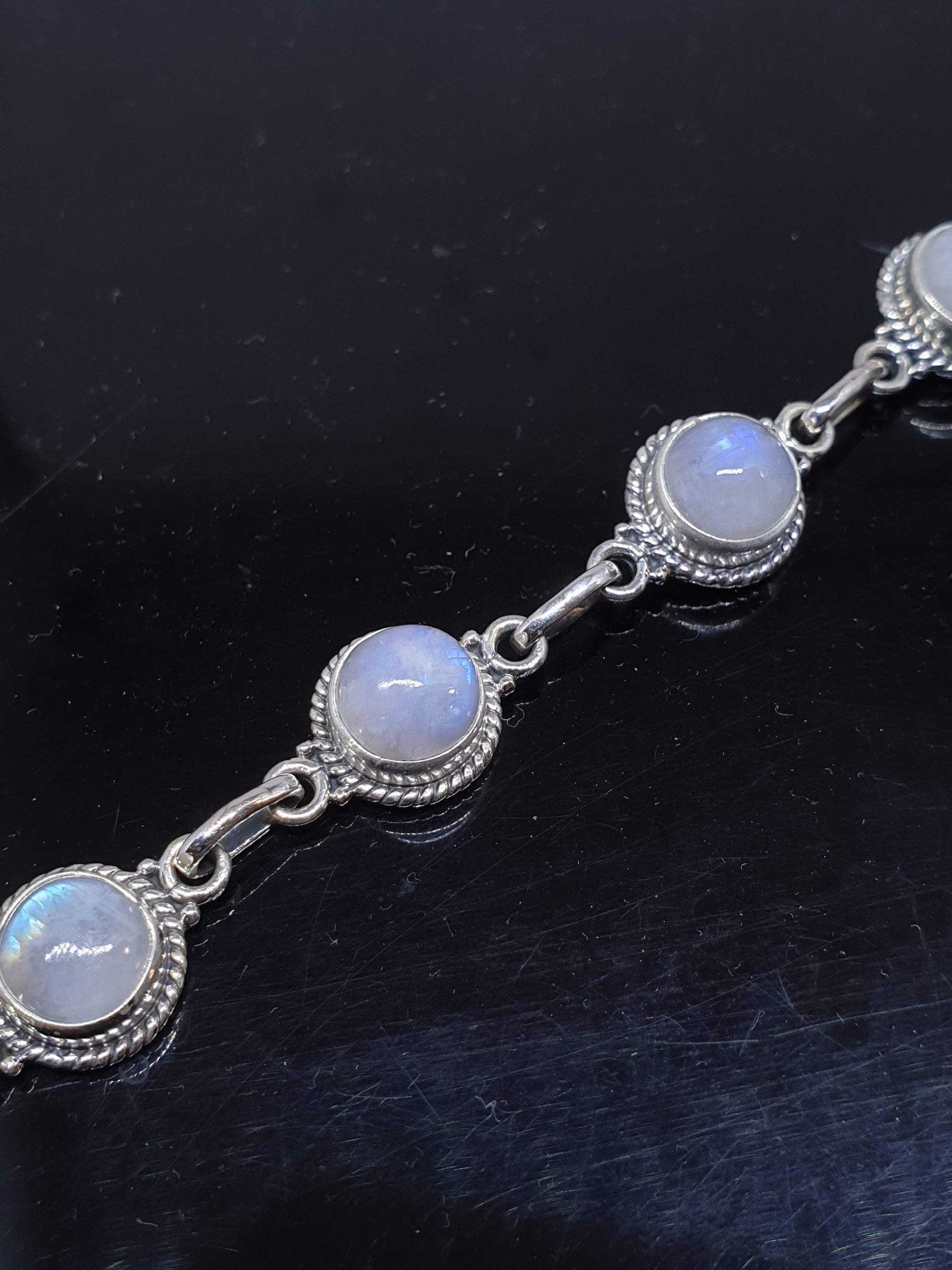 Blue Fire Rainbow Gemstone Piedra Luna 925 Silver Bracelet RSB1
