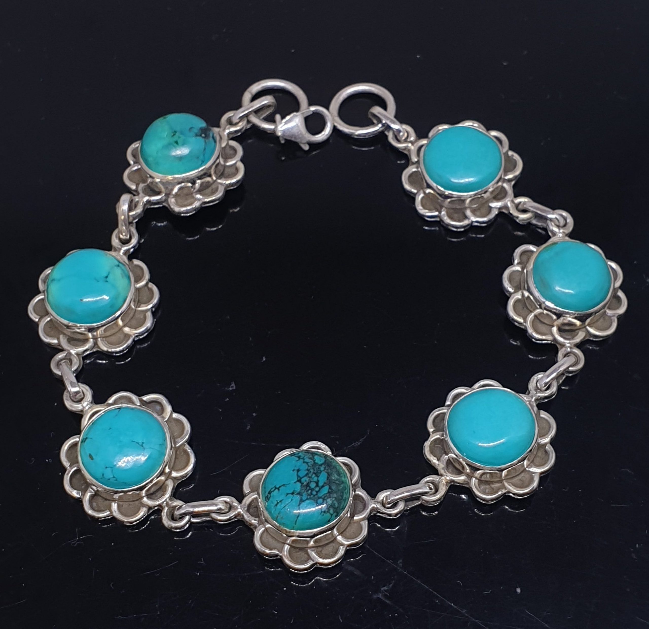 Turquoise Nepali Artwork 925 Silver Artisan Bracelet RSB1