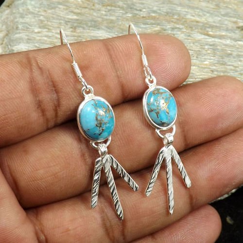 Blue Copper Turquoise 92.5 Sterling Silver Earring