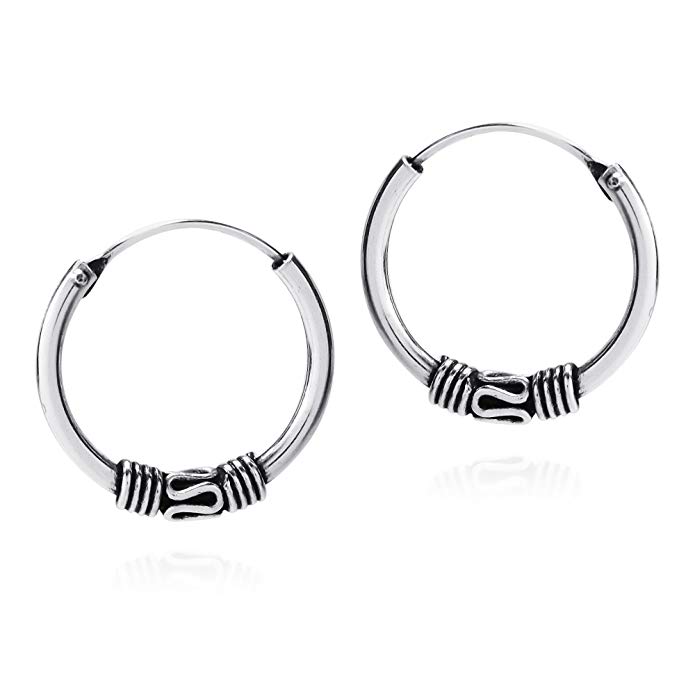925 Sterling Silver Bali-Style / Tribal-Style” Tiny Small Endless Hoop Earrings for Cartilage, Ear, Nose and Lip