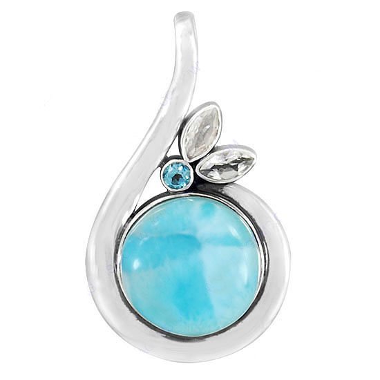 925 Sterling Silver Larimar, Blue Topaz, White Topaz Pendant