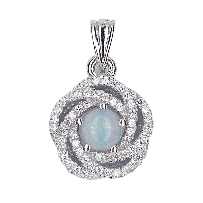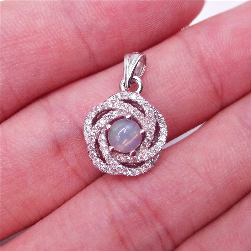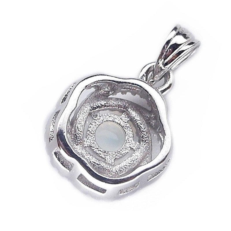 NATURAL ROUND CAB WHITE OPAL 925 SILVER FLOWER PENDANT
