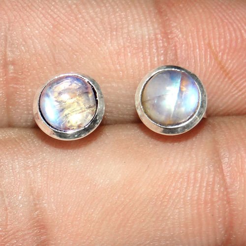 Rainbow Moonstone 92.5 Sterling Silver Stub Earring