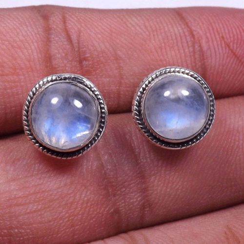 Rainbow Moonstone 92.5 Sterling Silver Stub Earring