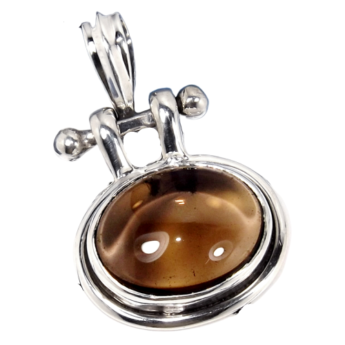 Unique Smoky Cab Gemstone Jewelry 925 Silver 1″ Pendant