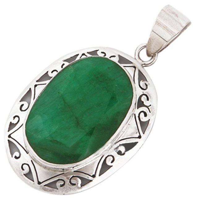 Emerald Corrundum Cut Gemstone Designer Pendant (925 Sterling Silver) 2″