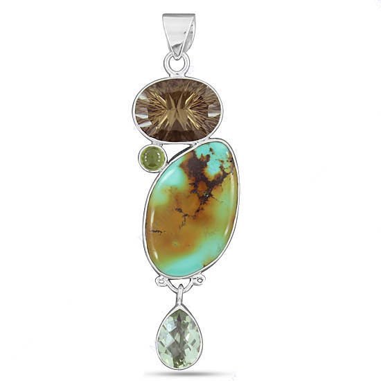 925 Sterling Silver Turquoise, Smoky Quartz Pendant