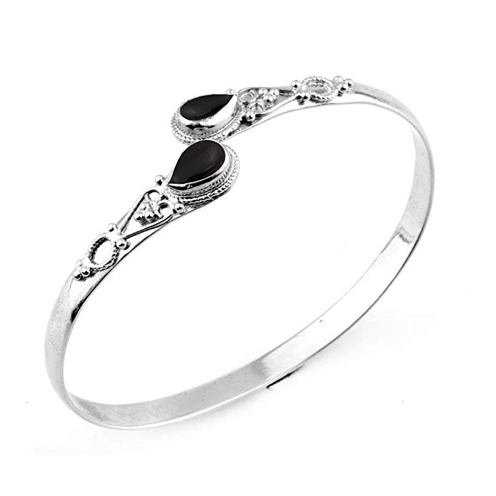 Designer Black Onyx Bangle Adjustable 925 Sterling Silver Bracelet