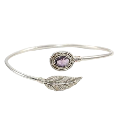 Leaf Design 925 Solid Silver Bangle Natural Amethyst Cut Gemstone